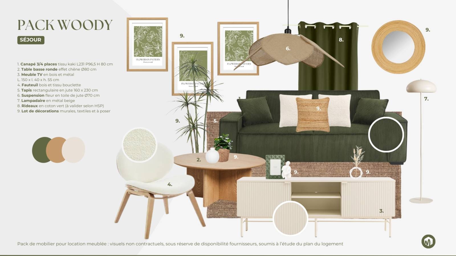 Créez un cocon apaisant avec le pack Woody. Des matières naturelles, des tons doux et un style épuré pour une atmosphère réconfortante et intemporelle. Offrez à vos locataires une ambiance propice au